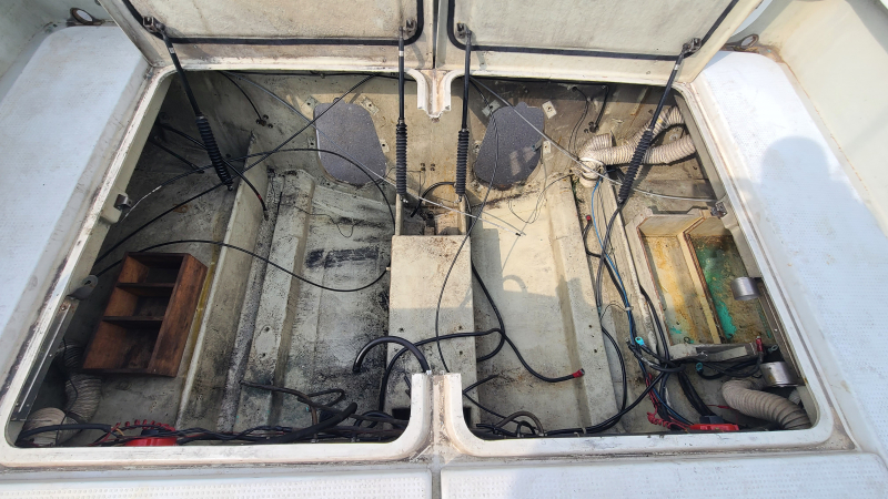 キャビン内には海水が浸水していますので水洗いをして乾燥。